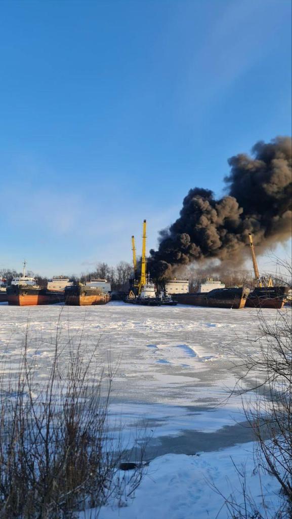 Впоследствии добавляется, что огонь охватил кран судоремонтного завода: горит топливо на площади 100 кв. м вокруг и есть угроза возгорания соседних объектов. Появилось заявление Приволжской транспортной прокуратуры об открытии дела о нарушении правил техники безопасности.