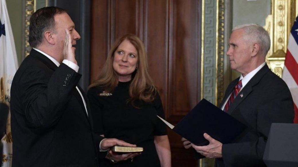 На своей странице в соцсети Пенс отметил: «имел честь привести к присяге Майка Помпео в качестве нового директор Центрального разведывательного агентства».