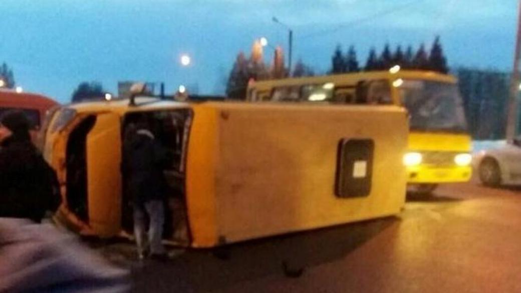Сегодня вечером во Львове по улице Шевченко, 317 возле заправки перевернулась маршрутка с пассажирами, в результате аварии несколько человек получили ранения.