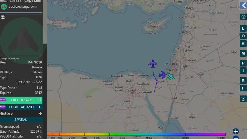 Ил-76 прилетел из Египта и летел в сторону, противоположную Украине, - об этом свидетельствуют данные мониторинговых ресурсов