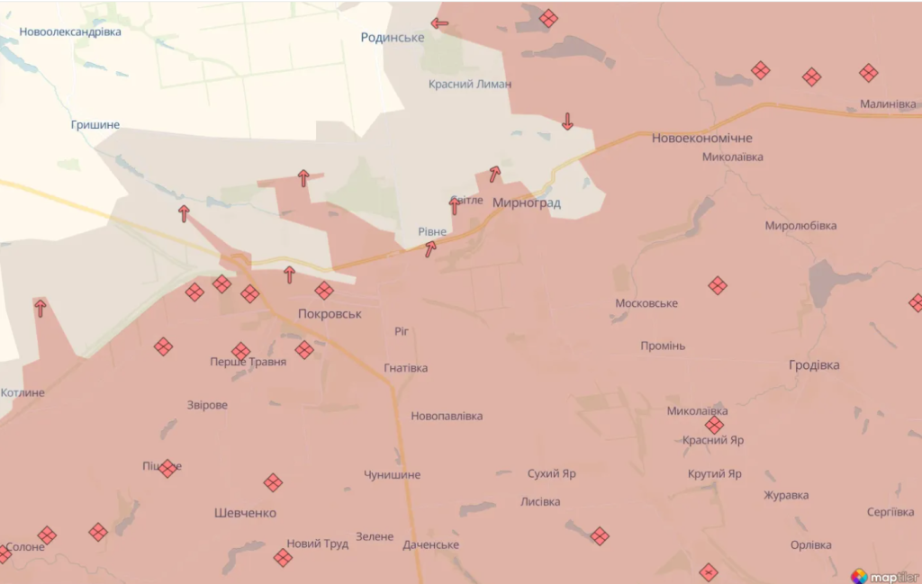 "Если говорить о населенных пунктах, то это 100% будет Гришино и направление на Доброполье. А если более широко брать – то это выход на Днепропетровскую область, движение на север в сторону Краматорско-Славянской агломерации. Но это уже, видимо, следующий этап, который они себе планируют. Думаю, будет задействована не только группировка, которая есть в Покровске и Мирнограде, но еще и группировка с северо-восточного направления, где противник тоже пытается продвигаться", – сказал Ласийчук.
