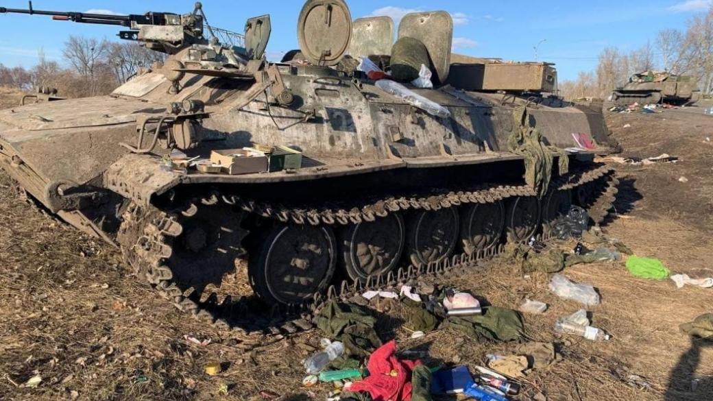 Как сообщают корреспонденты «УНИАН», на выезде из города в сторону Циркунов возле Харькова украинскими военными уничтожены два российских МТЛБ с военными.