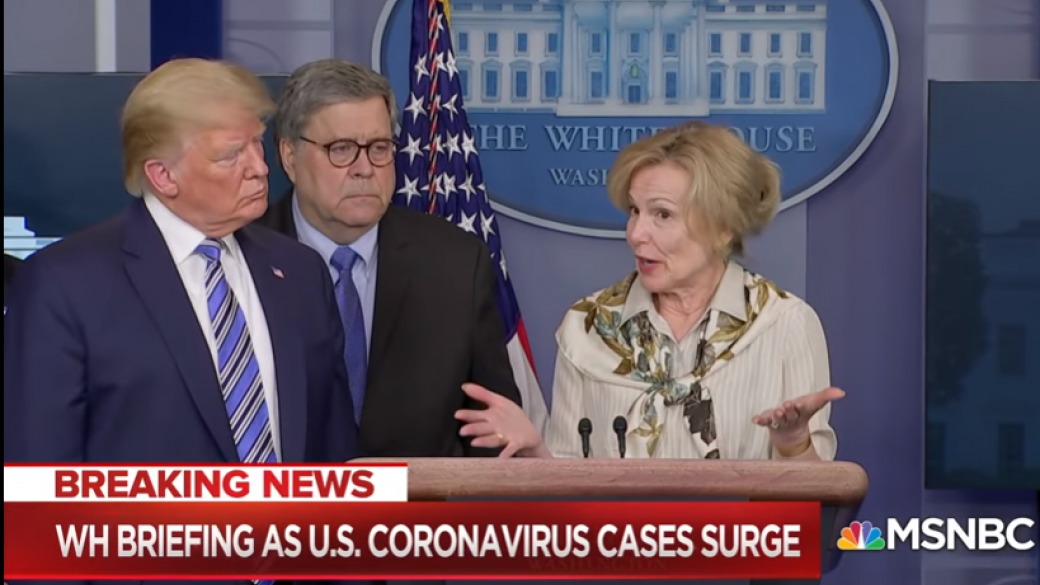 Президент США Дональд Трамп на трибуне Белого во время выступления врача поспешно отошел от медика Деборы Брикс, заявившей, что у нее температура. Об этом пишет MSNBC.