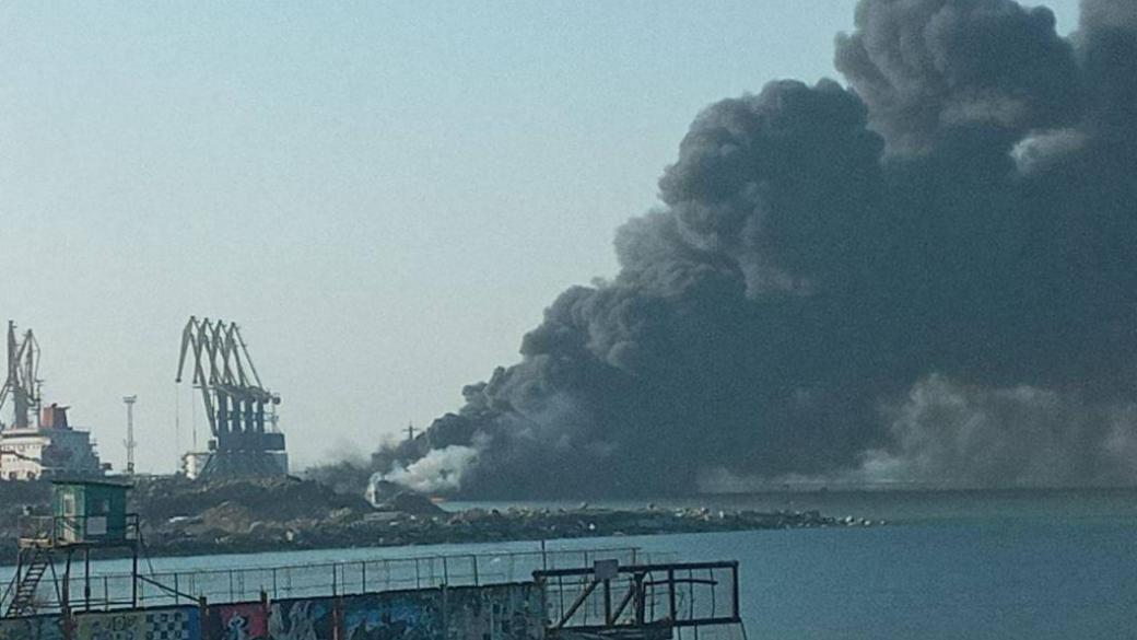 Во временно оккупированном Бердянске Вооруженные Силы Украины уничтожили большой десантный корабль БДК «Орск».