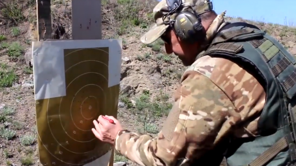 На видео показано, как Ходаковский поражает цели и отмечает свои достижения, сообщая, что «вылетов за пределы габаритов нет, все в зоне поражения».
