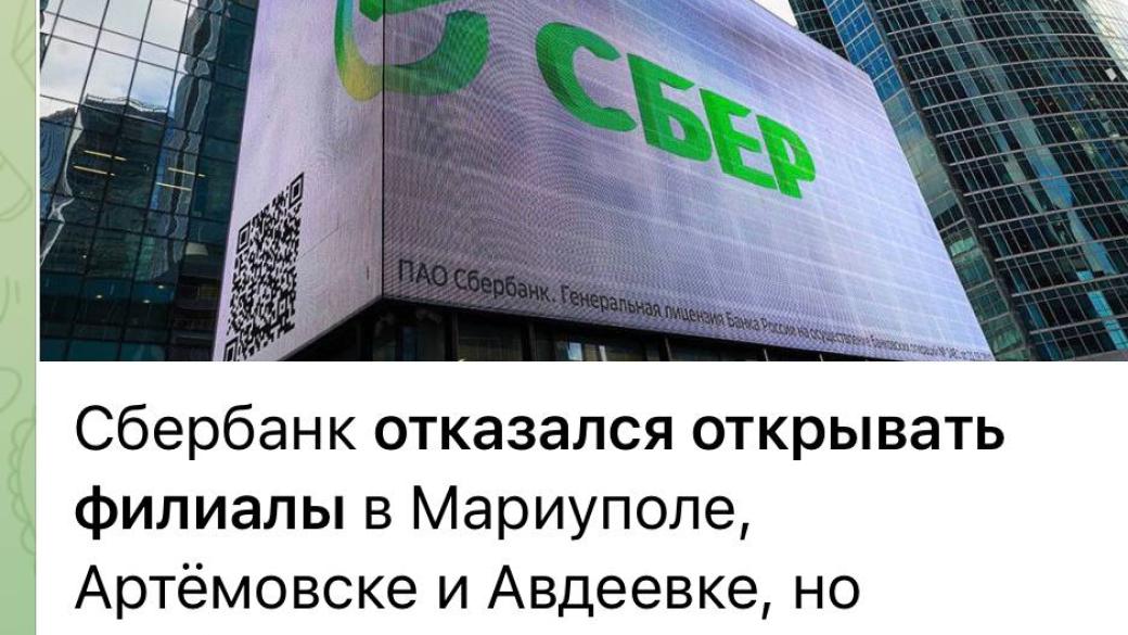 Сбербанк России отказался открывать свои банки в Мариуполе, Бахмуте и Авдеевке... Но обещал подумать... Может быть...