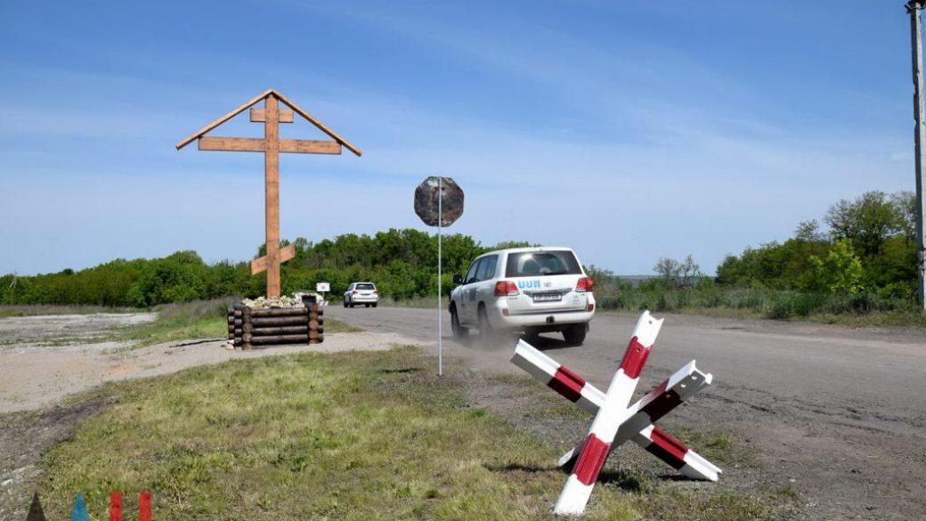 На въезде в оккупированную Горловку сегодня торжественно установили поклонный крест, подаренный жителями Санкт-Петербурга.