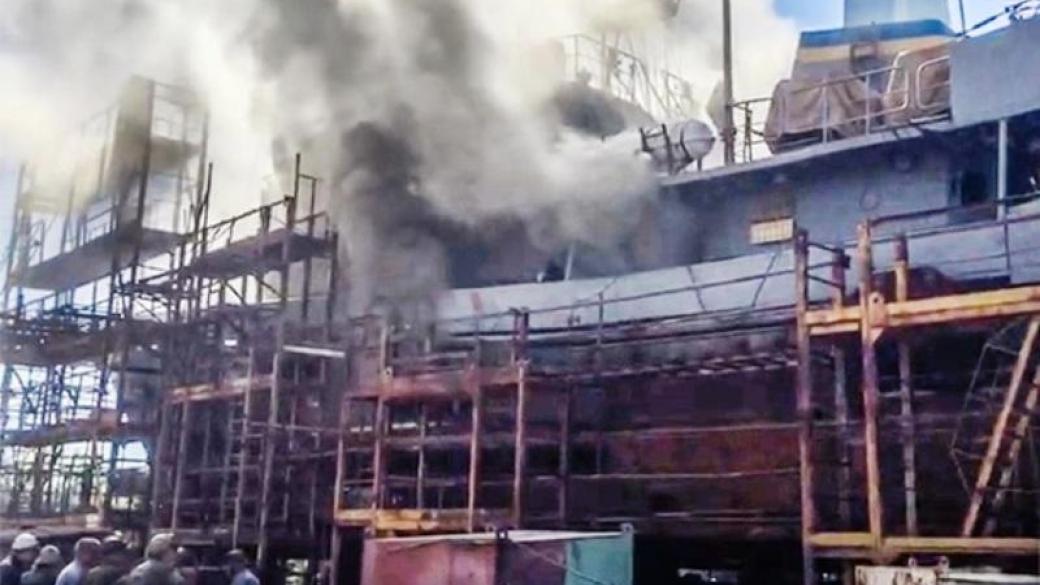 По информации, корабль загорелся при выполнении огневых работ — замене металла с использованием открытого огня.