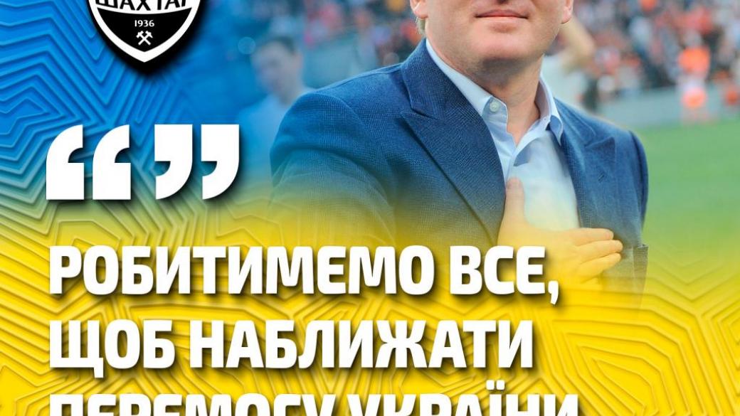 «Я всем сердцем желаю, чтобы Украина победила как можно скорее, чтобы Шахтер вернулся в мирный украинский Донецк, и чтобы следующий день рождения клуба мы отметили все вместе на нашей Донбасс Арене».