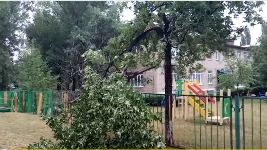 Вчера из-за сильной непогоды в оккупированной Горловке были поломаны деревья, повреждены крыши домов и магазинов.