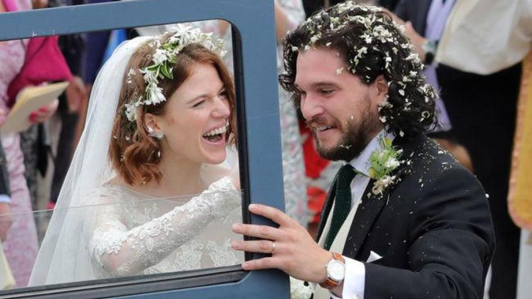 Звезда сериала «Игра престолов» Кит Харингтон вчера женился на своей коллеге на съемочной площадке — Роуз Лесли.