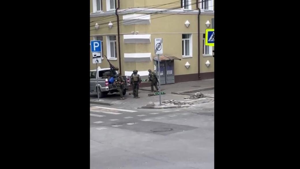 ЧВК "Вагнер" готовят Ростов к уличным боям с войсками минобороны РФ и на центральных улицах саперы устанавливают минные шлагбаумы. В центре Ростова появились танки и автоматчики, выезды из города перекрыты, жителей просят не покидать дома.