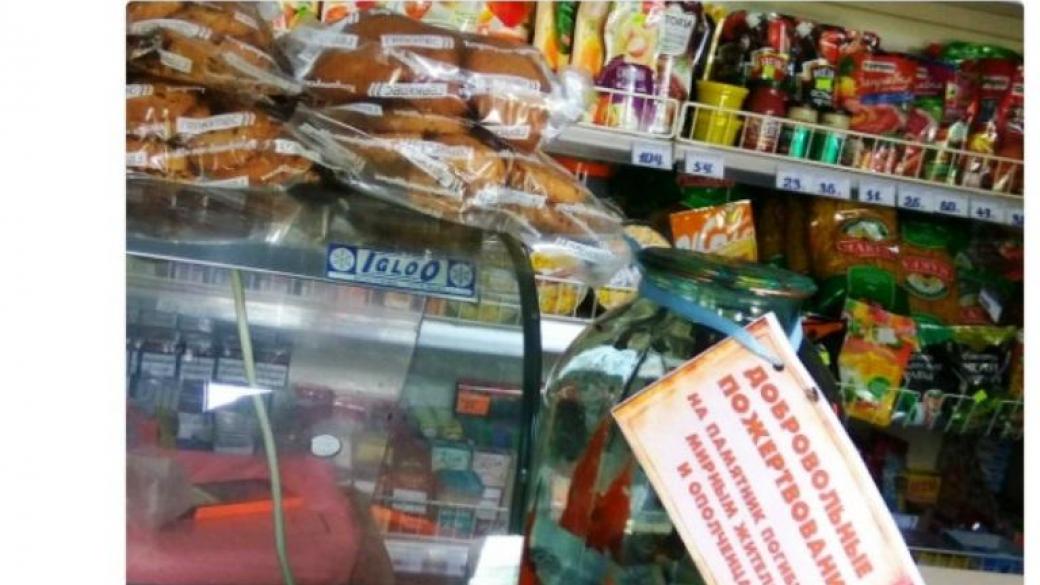 В соцсети местные жители сообщают, что в торговых точках для в качестве емкостей для сбора «пожертвований» используются обыкновенные трехлитровые банки, на которых наклеены листовки.