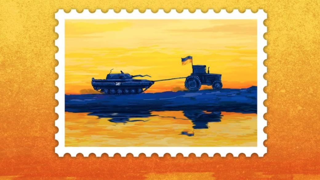 Укрпочта анонсировала выпуск новой марки с изображением трактора, который на прицепе тянет танк.