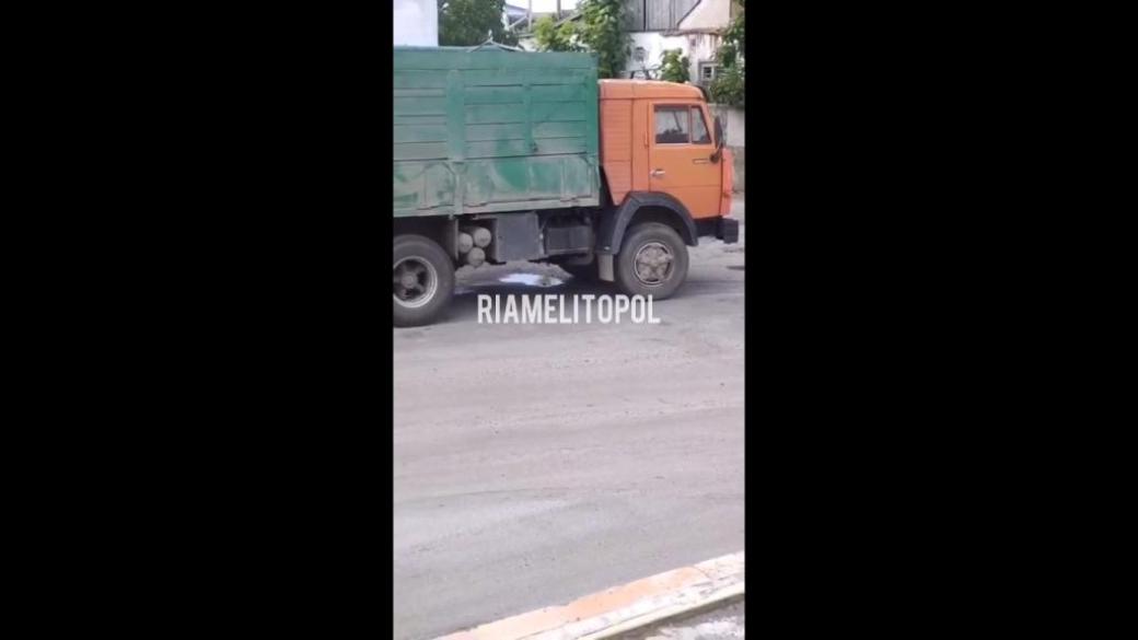 Целыми КАМАЗами российские оккупанты вывозят зерно из Мелитополя. Очереди из грузовиков у проходной элеватора регулярно наблюдают местные жители.