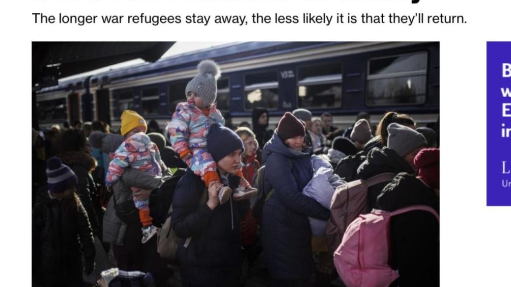 Как сообщают эксперты издания, если хотя бы часть из 2,8 млн женщин трудоспособного возраста не удастся вернуть в страну, это буде стоить Украине 10% от довоенного ВВП, а это - $20 млрд в год в худшем случае, что превысит предложенный ЕС пакет помощи в размере $13,9 млрд.