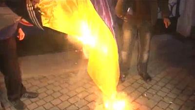По информации ведомства, злоумышленники 1991, 1995,1996 и годов рождения сняли шесть государственных флагов с флагштоков жилого дома, после чего сожгли их. При этом молодые люди находились в состоянии алкогольного опьянения.