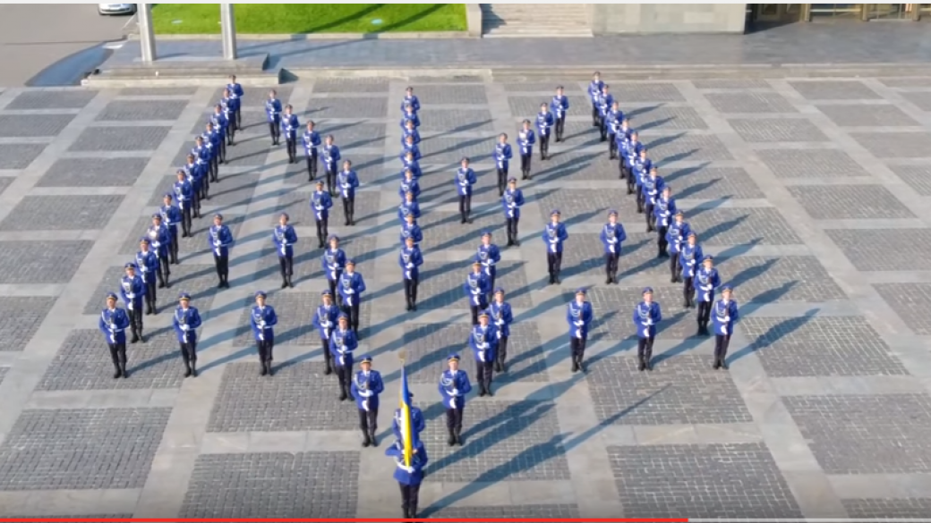 На канале Нацгвардии в Youtube опубликовано видео с оригинальным поздравлением. На видео видно, как ацгвардейцы выстроились в виде Герба Украины на площади перед Музеем истории Украины во Второй мировой войне в Киеве и подняли Государственный Флаг.