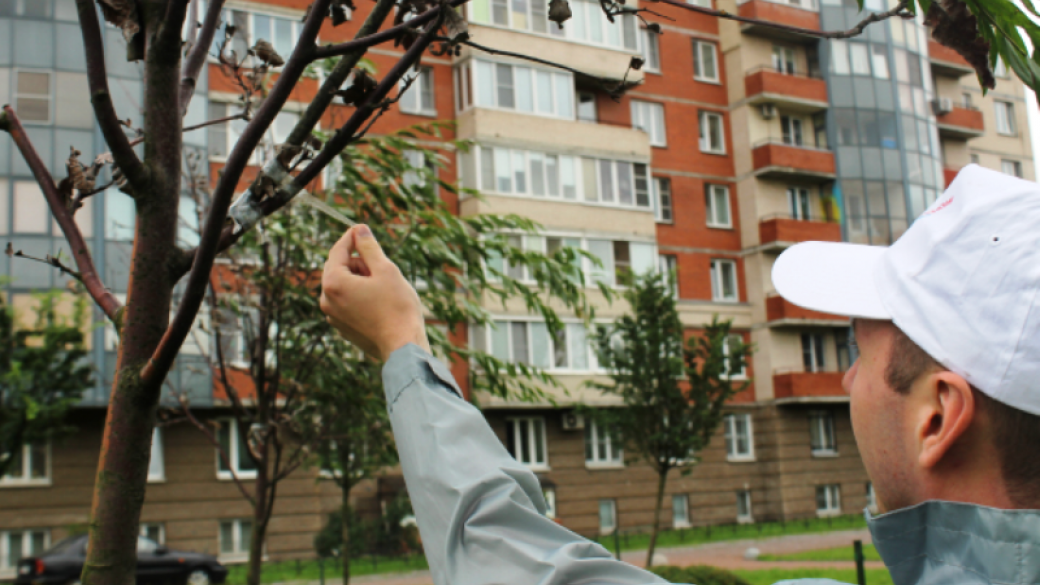 В российском городе Санкт-Петербурге сотрудники ЖКХ приклеили скотчем зеленые ветки к засохшим деревьям, чтобы одержать победу в конкурсе на лучшее благоустройство сада.