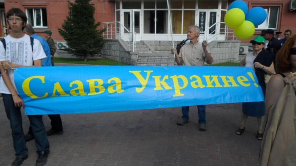 В российском городе Новосибирске более десяти человек пришли к консульству Украины, чтобы отпраздновать День Независимости Украины.