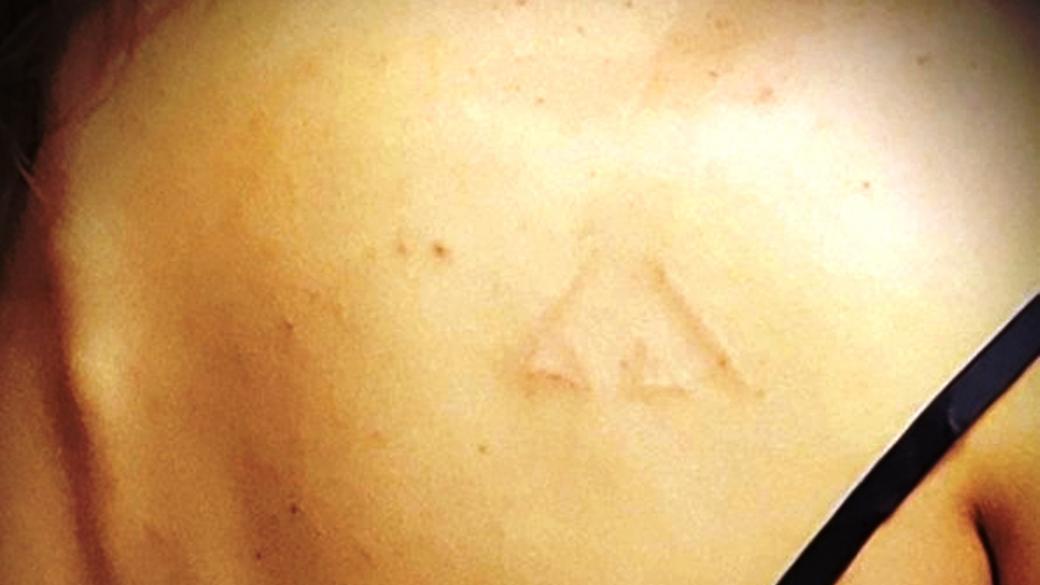 Также, в ее доме появлялись пугающие звуки, словно скрежет металла, при этом краем глаза американка замечала нечто странное, но когда поворачивалась, ничего не видела. В один из дней, она проснулась с процарапанным треугольным знаком на спине, который сильно чесался.