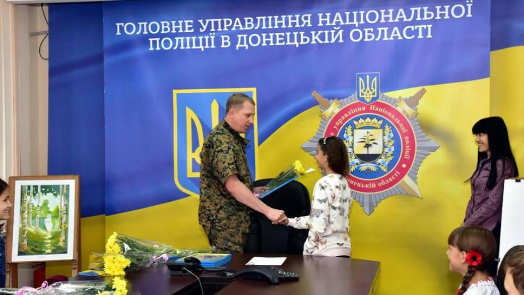 «Дети, учащиеся Мариупольской художественной школы им. А.Куинджи, выставили у нас в главке свои работы. Рисовали нашу Украину. Подводя итоги этой выставки и выражая слова благодарности, я дал детям „домашнее задание“ — после посещения нашего главка нарисовать свое отношение к полиции, свои первые впечатления о встрече», — сообщил глава областной полиции.