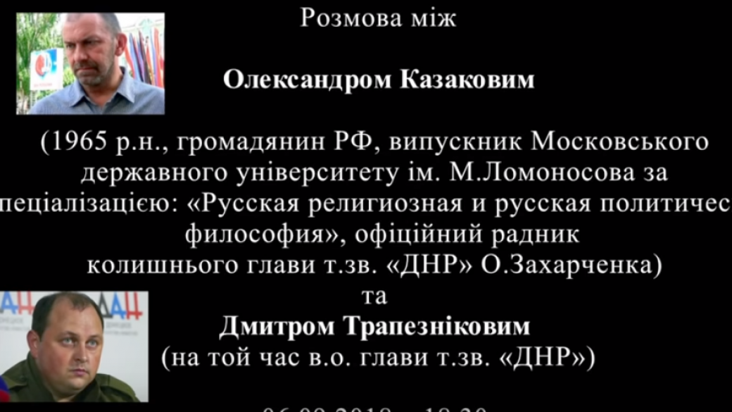 На опубликованной украинскими силовиками аудиозаписи записаны переговоры, прошедшие 6 сентября между «и.о. главы ДНР» Дмитрием Трапезниковым и экс- советником Захарченко Александром Казаковым.