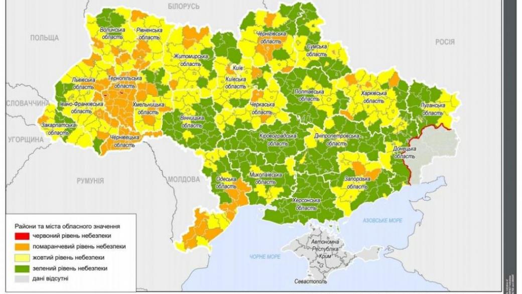 В Донецкой области в «желтой зоне» оказались: