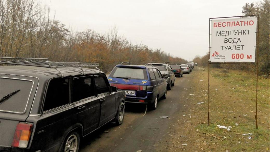 На Марьинском направлении на КПП «Александровка» (Каргил) также выстроилась длинная вереница из транспортных средств. По словам очевидцев, за три часа очередь продвинулась лишь на 5 авто:
