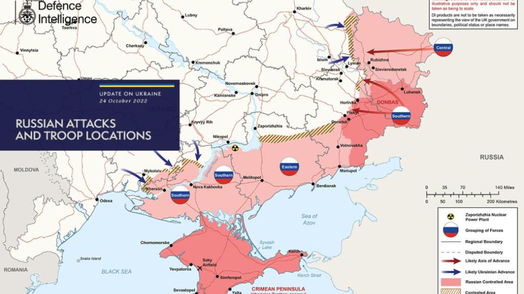 В британской разведке добавили, что Вооруженные силы Украины продолжают контрнаступательные действия на Херсонском и Харьковском направлениях. В южной части страны ВСУ пытаются продвинуться со стороны Николаева, в районе Снигиревки и в вдоль правого берега Днепра. В восточных регионах украинские бойцы проводят бои вдоль линии реки Оскол.