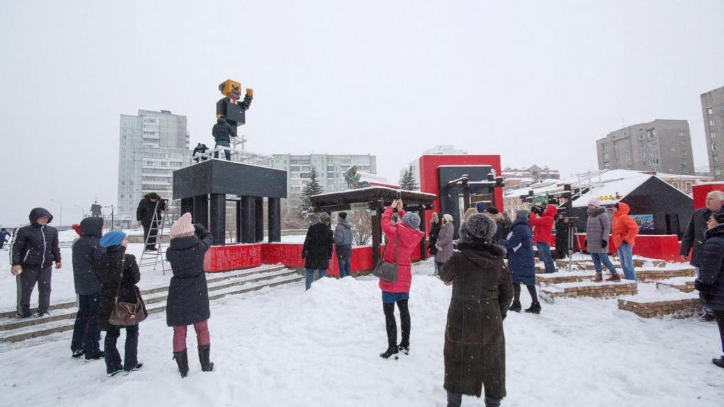 В российском городе Красноярске художники установили памятник Владимиру Ленину в стиле пиксель-арт.