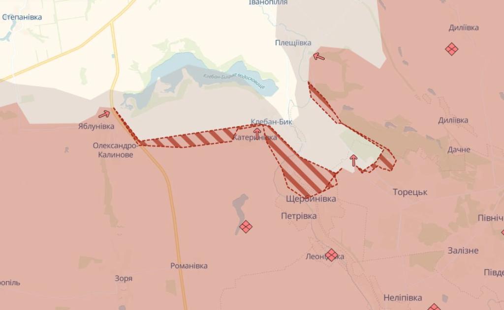 По информации аналитиков, оккупанты продвинулись в городе Торецк и поселке Щербиновка Донецкой области, а также вблизи поселка Ямполь и села Катериновка на Донетчине.