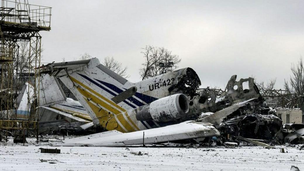На фото видны остатки разрушенных зданий, посеченные обстрелами деревья, уничтоженный транспорт и самолеты.