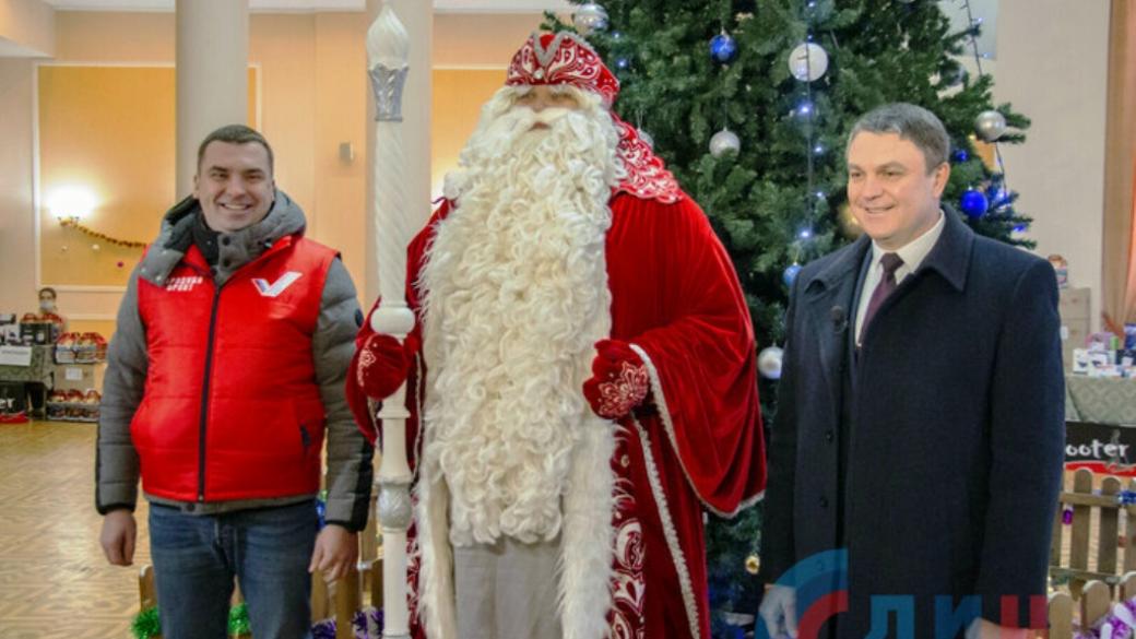 Так называемый «глава ЛНР» Леонид Пасечник сегодня встретил российского Деда Мороза из Великого Устюга, который привез подарки для детей ОРЛО. Об этом сообщают подконтрольные ОРЛО паблики.