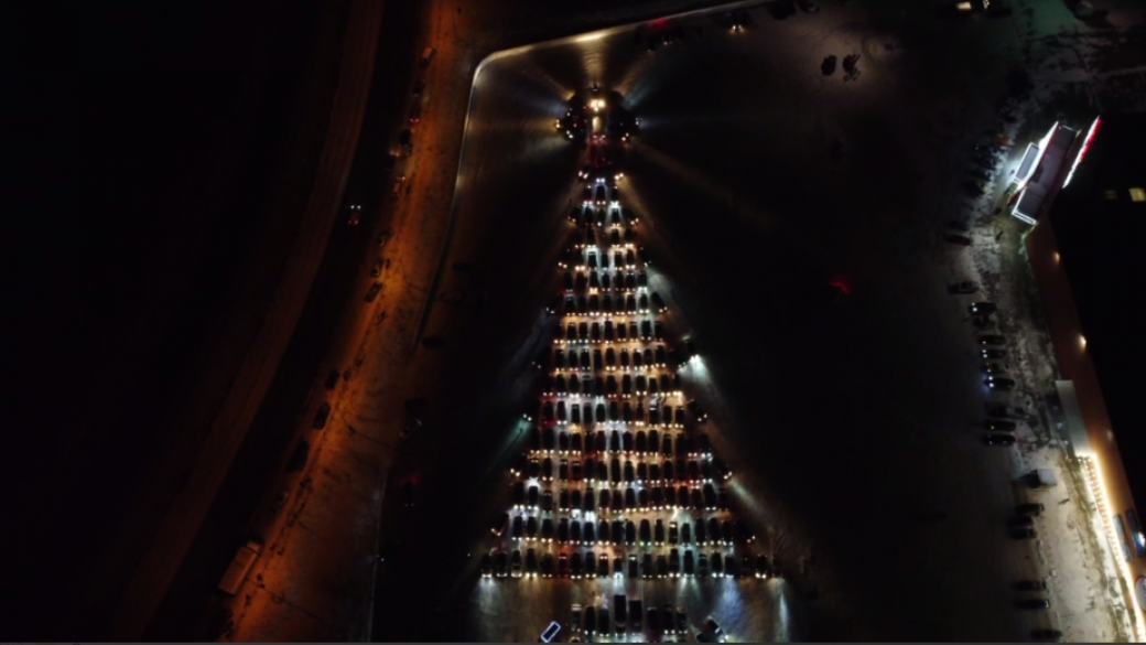 Отмечается, что 220 автомобилей были выстроены в елку, под которой организаторы составили цифру 2022. Когда елка была готова, по команде ведущего участники зажигали сначала «аварийки», а после — дальний свет.