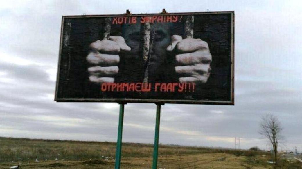 Отмечается, что билборды размещены таким образом, что все, кто выезжает со стороны аннексированного Крыма, смотрят непосредственно на них. При этом на изображении с Путиным написано, что он хотел Украину, а получит Гаагу.