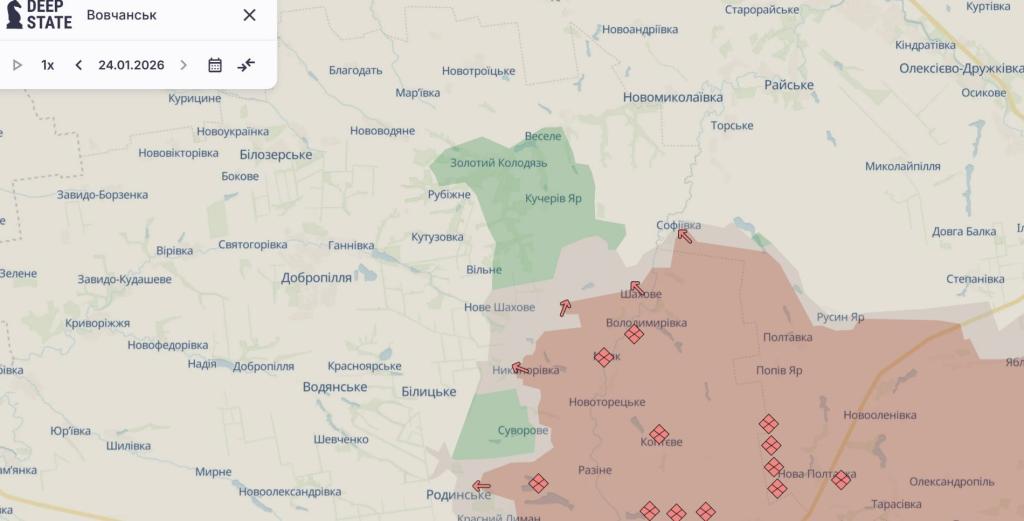 Российские войска за минувшие сутки, 24 января, имели успех на двух направлениях в Донецкой области. Об этом сообщает мониторинговый ресурс DeepState.