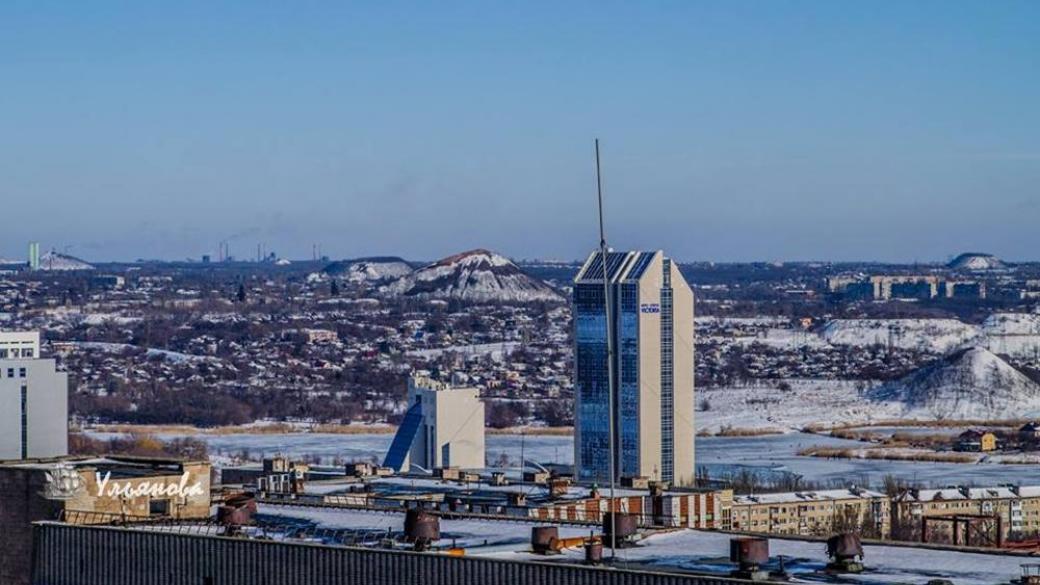 Так, на снимках видны припорошенные снегом терриконы, скованные льдом водоемы, пустынные улицы и залитая солнцем центральная площадь Ленина.