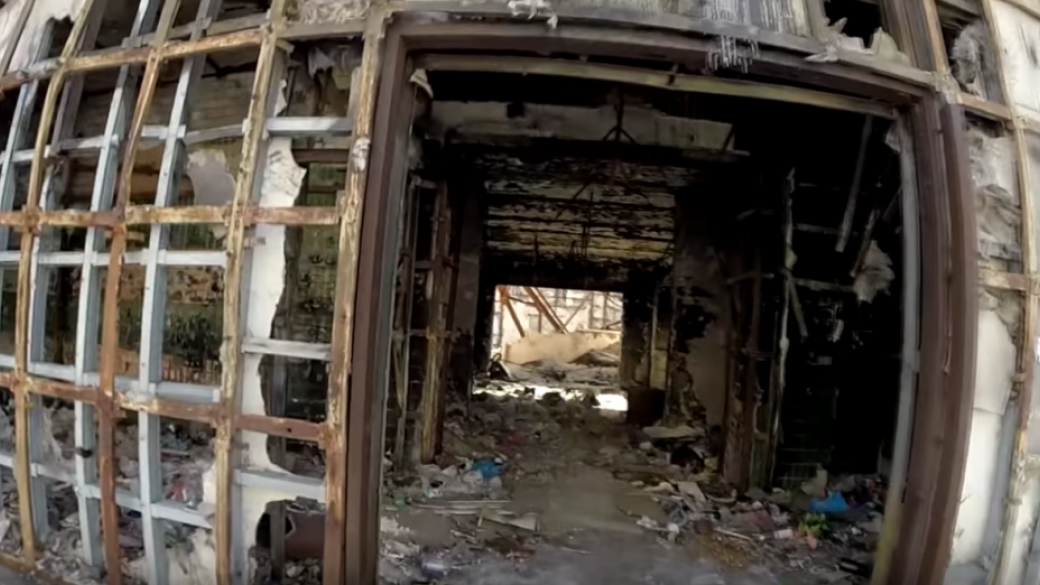На видео видно, что местный супермаркет «7 квартал» сгорел почти до основания из-за попадания снарядов. Другие магазины закрыты и повреждены осколками. В жилых домах окна забиты фанерой, балконы — без стеклопакетов. При этом многие квартиры выгорели из-за попаданий. Местная жительница отмечает: