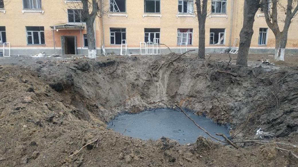 «Наслідки удару росіїйською „високоточною ракетою“ по житловим кварталам Гостомелю».
