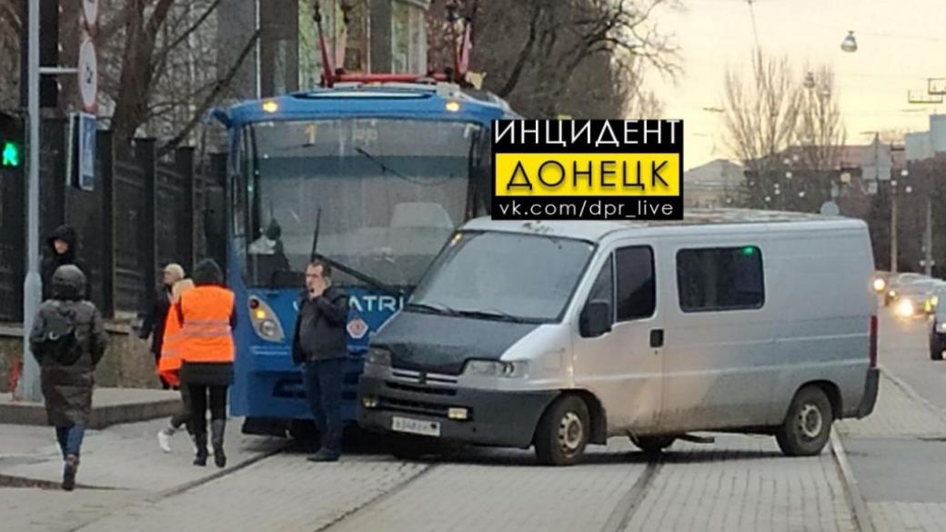 В неподконтрольном Украине Донецке 24 марта произошла авария с участием трамвая и микроавтобуса. Об этом сообщают очевидцы в социальных сетях.