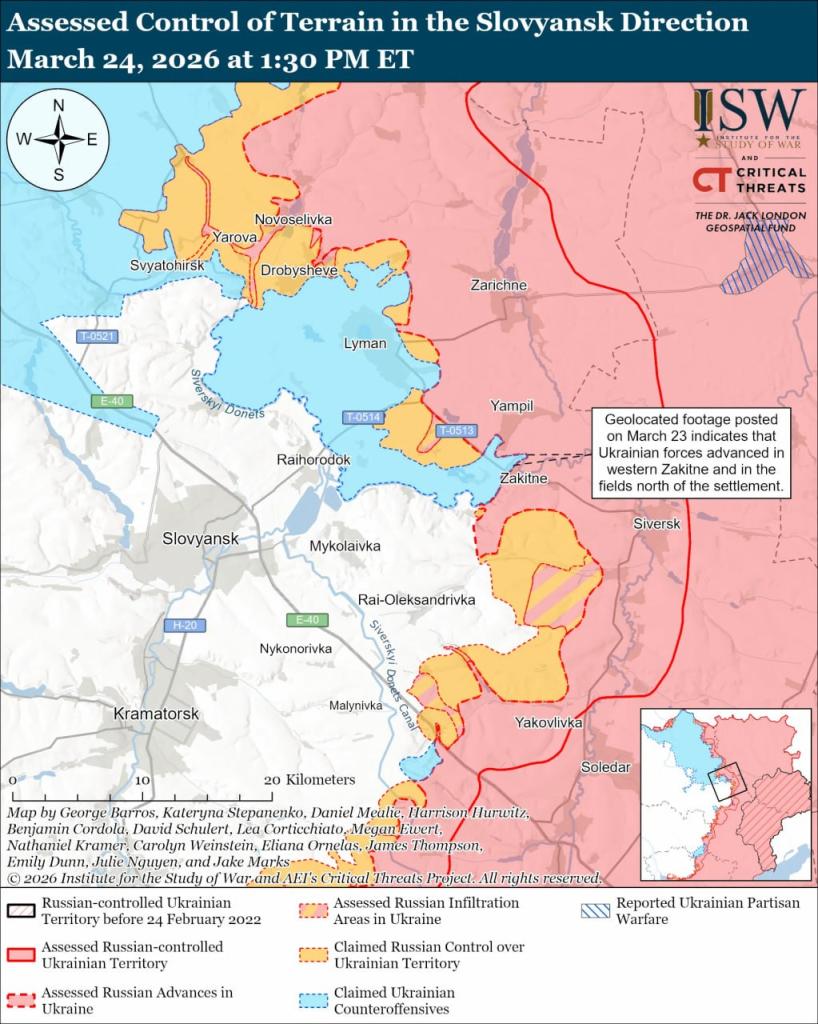 Украинские войска недавно продвинулись на Славянском направлении. Об этом сообщили в американском Институте изучения войны, пишут «Новости Донбасса».