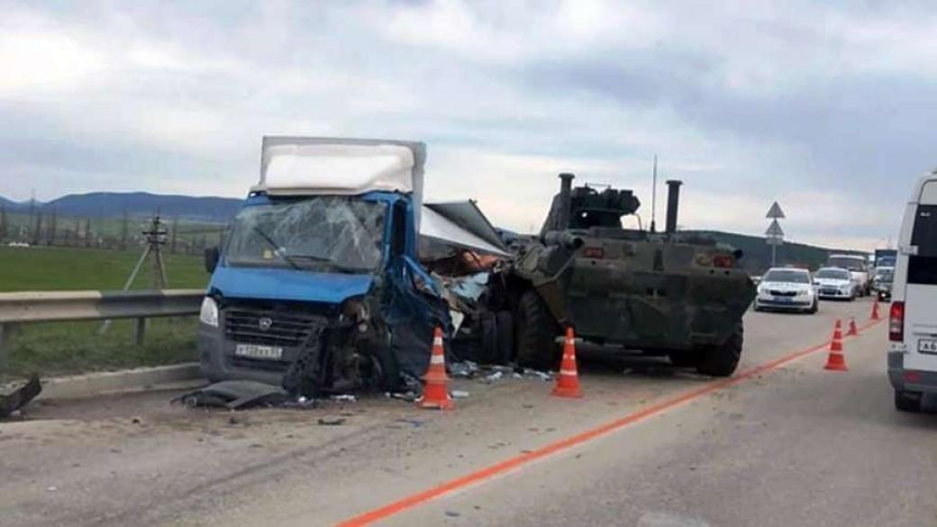 В аннексированном Россией Крыму произошло ДТП с участием БТР-82А и микроавтобуса ГАЗель. Это произошло на трассе «Таврида» в районе Севастополя.