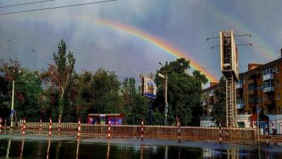 Над временно неподконтрольным украинскому правительству Донецком появилась огромная радуга. Ее фото показали дончане в социальных сетях.