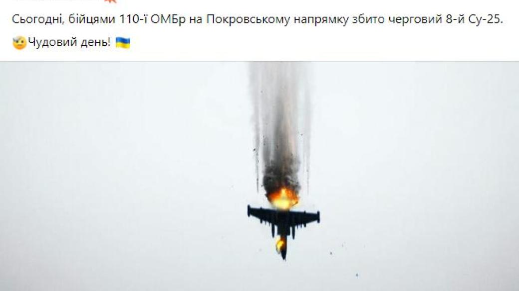 Бойцы 110-й ОМБр уничтожили на Покровском направлении очередной российский Су-25. Об этом сообщает пресс-служба бригады.