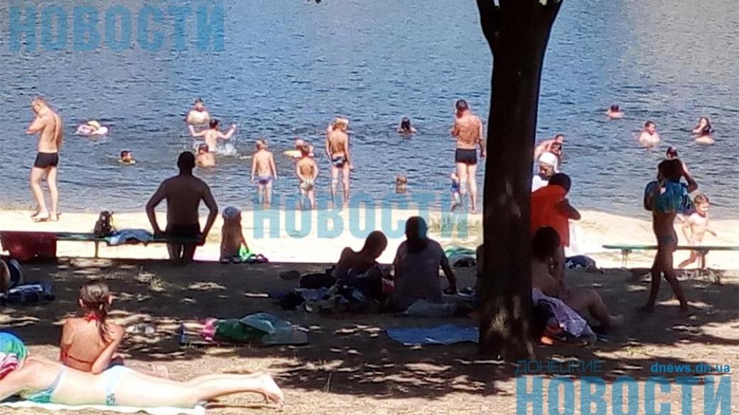 Жители оккупированного Донецка, не имеющие возможности в знойный день свободно выехать на отдых в курортную зону купаются в городских водоемах.