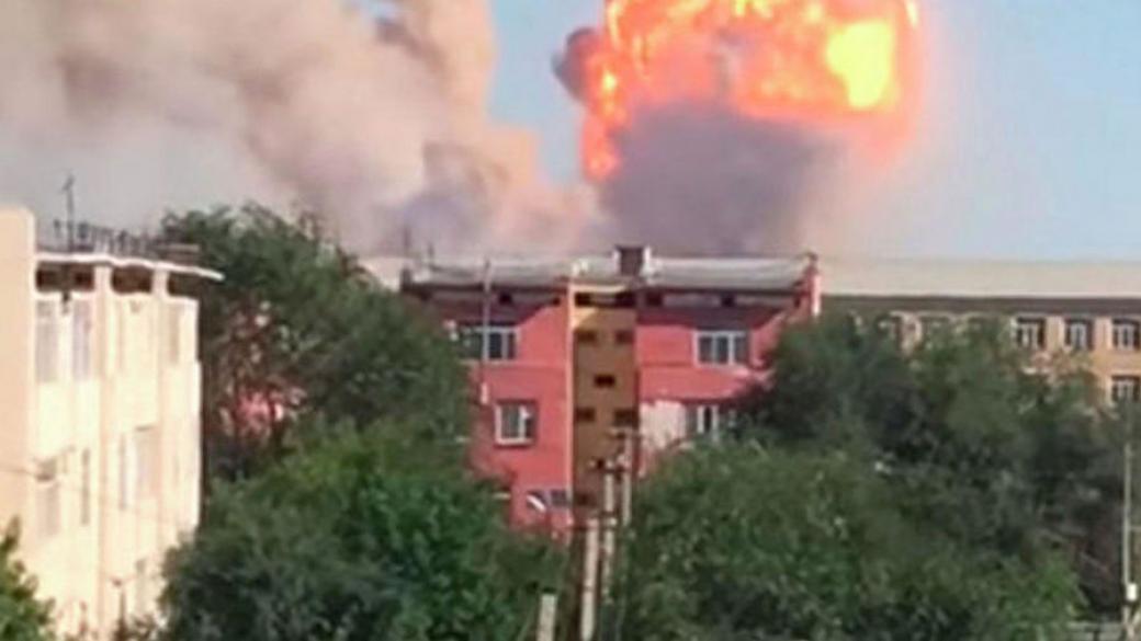 В городе Арысь (Казахстан) тушение пожара на складах с боеприпасами прервано в связи с продолжающимися взрывами.