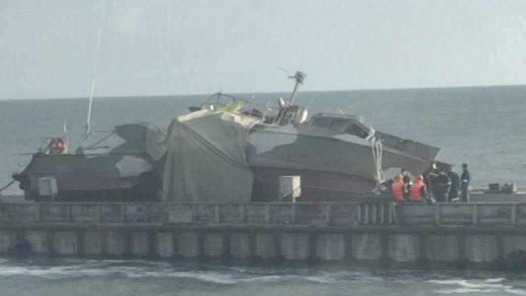 Как уточняют ресурсы, серьезная пробоина накрыта брезентом, но, судя по общему виду катера, ремонтировать его придется очень долго.