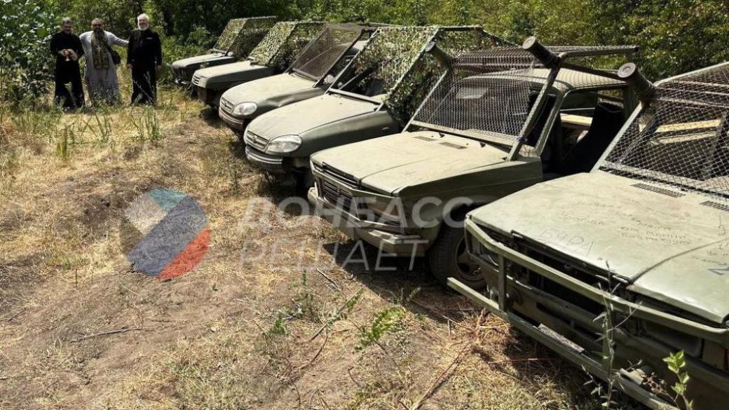 Также отмечается, что переделанные под военные авто для более "надежной защиты" освятили военные священники.