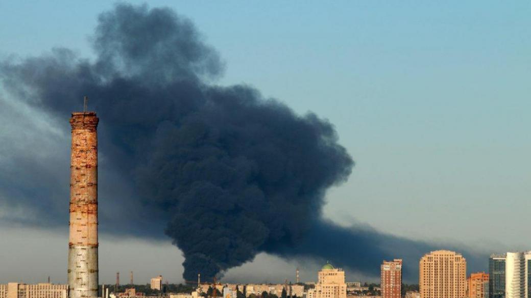Жители Донецка сообщают о мощном пожаре на военной базе НВФ в Киевском районе. Все в дыму